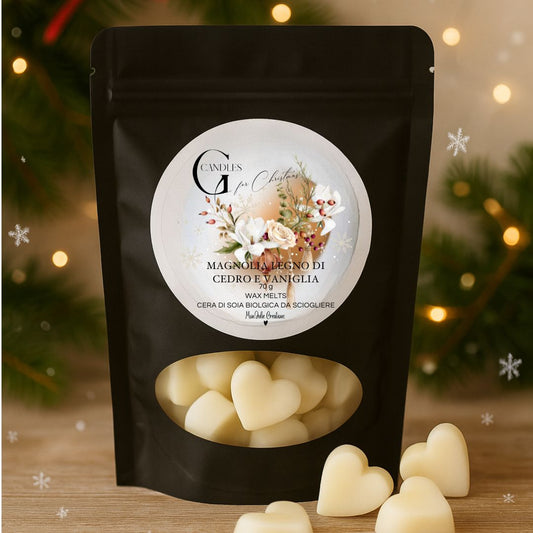 Candela Natalizia al Profumo di Vaniglia, Magnolia e Legno di Cedro - Wax Melts In Cera di Soia
